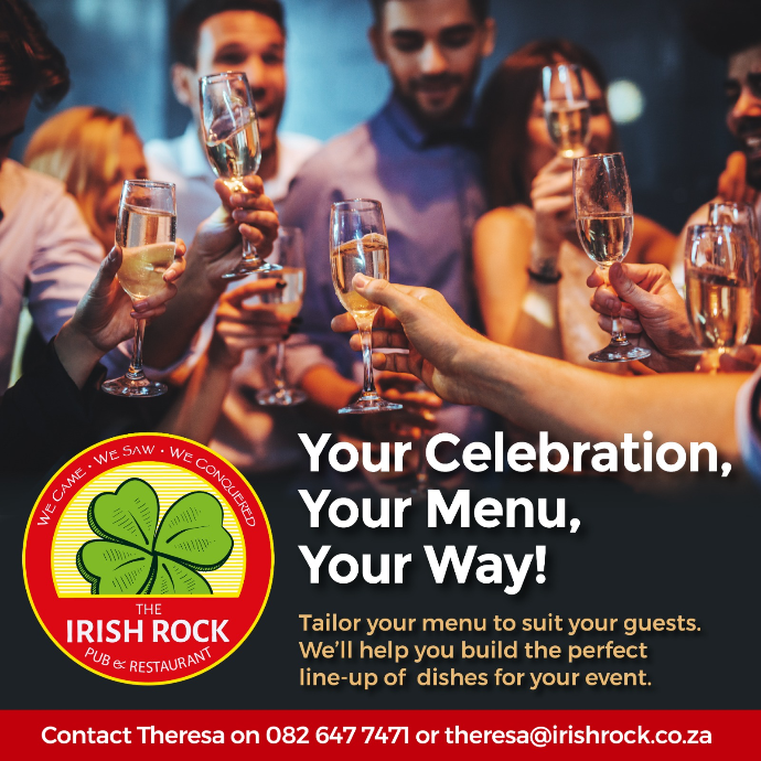 Call or WhatsApp Theresa on 082 647 7471 or email theresa@irishrock.co.za to book your year-end function today.