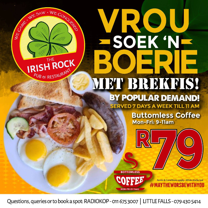 Available Weekdays; Mon - Fri (Full day offer) for only R85.